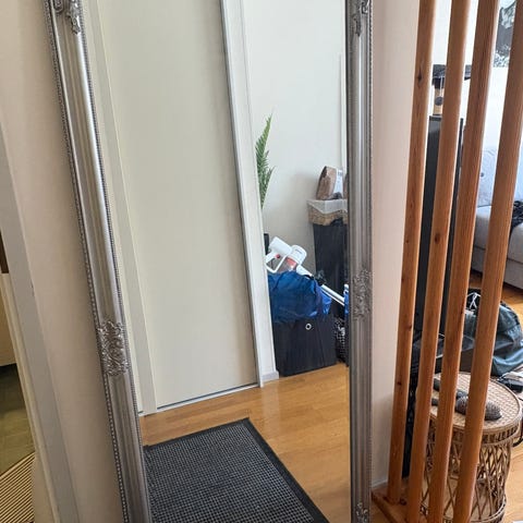 Käytetty hyväkuntoinen IKEA Nissedal peili mustalla kehyksellä. Koko on täyskorkea, sopii esimerkiksi seinälle kiinnitettäväksi tai nojaamaan seinää vasten. Nouto Välivainiolta.