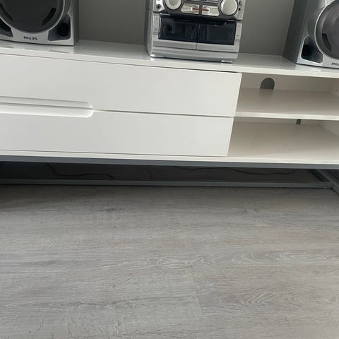 Myydään suht hyvässä kunnossa, oleva tv-taso. Yhdestä kulmasta lähtenyt maalia ja tason pinnalla kohouma, myös yhden hyllytason kiinnike puuttuu.