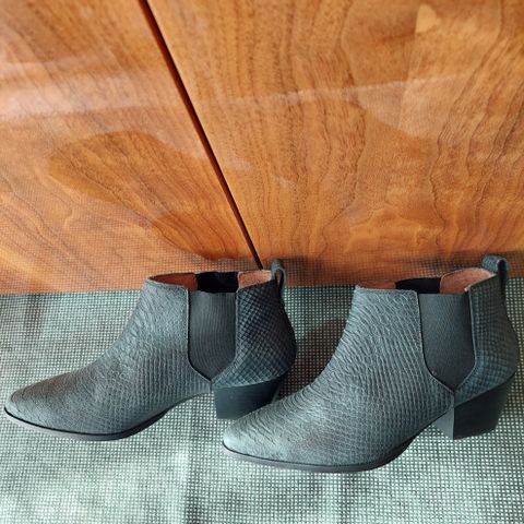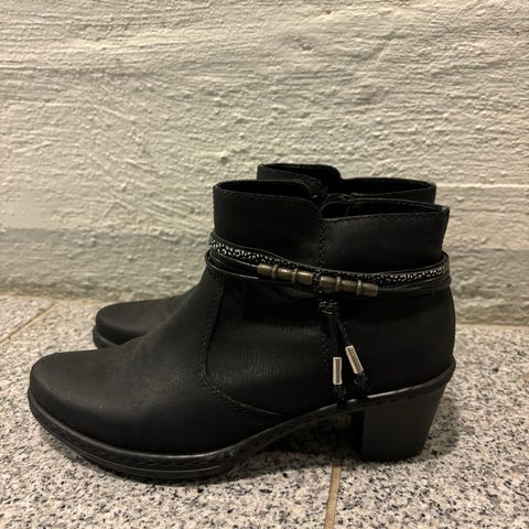 Nilkkurit, koko 40. Väriltään mustat ja nilkkapituiset, sivussa koristevetoketju. Sispuolella vetoketju pukemisen helpottamiseksi. Paksu pohja ja matala korko tuovat vakautta ja pitävyyttä. Sopivat arkeen ja vapaa-aikaan viileämpiin säihin.