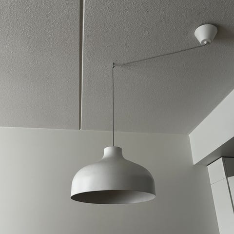 Ceiling lamp and lamp bulb, adjustable cord. Very small sigh of wear (pictured, barely noticeable), otherwise in great condition