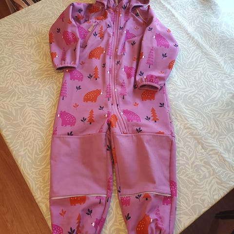 Siisti Jonathan merkin softshell haalari koossa 98. Toinen jalkalenksu puuttuu, siinä lahkeessa toinen lenksun nappi puuttuu. Saa helposti lisättyä sekä napin että lenksun.