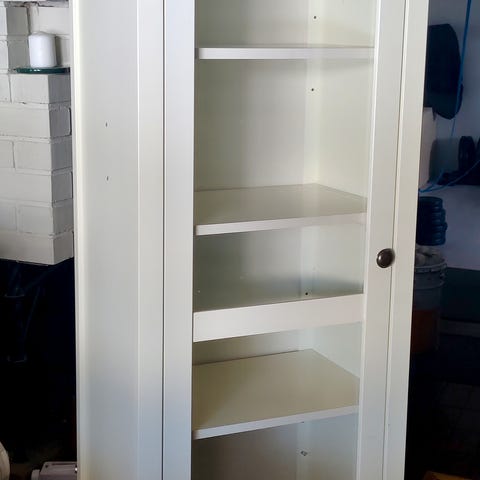 Kaikki yhteensä 50€. Hinta erikseen ostettuna vitriini 30€, hyllytasot ja kulmaosa 10€.