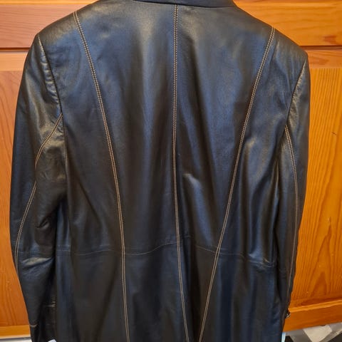H&M pitkä nahkatakki naisille. Väri musta ja koko one size. Materiaalina nahka. Takissa on edessä napitus ja suuret etutaskut. Pituus ulottuu noin reiden puoliväliin tai hieman alemmas käyttäjän pituudesta riippuen. Sopii käytettäväksi arjessa ja viileämmillä keleillä esimerkiksi kerrospukeutumisen kanssa.