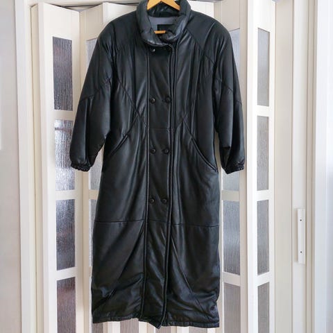 H&M pitkä nahkatakki musta one size naisten