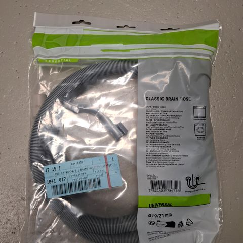 Todella vähän käytetty pyykinpesukoneen poistovesiletku. Tosi siistikuntoinen ja täysin ehjä. Pituus 1,5 metriä. Mukana toiseen päähän kulmaliitin ja kiristysklemmari. Toisessa päässä suora kuminen liitin.