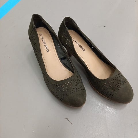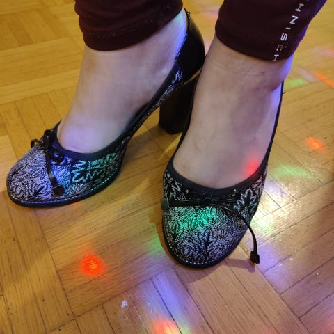 Sievi korkokengät, koko 38. Väri musta. Malli on matalalla, leveällä korolla varustettu peruskorkokenkä, jossa umpinainen kärki. Päällinen on sileäpintaista nahkaa ja pohjassa on kuvioitu kumipohja, joka antaa pitoa. Sopivat arki- ja juhlakäyttöön. Kengät on suunniteltu naisten lestiin.