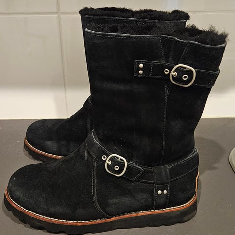 UGG saappaat, koko 40. Ruskeaa mokkanahkaa, sisäpuolella vaalea pehmeä vuori. Klassinen pitkä varsi ja tasainen kumipohja.