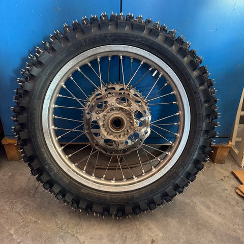 Uutena ostetut ja yhden vajaan talven harrastuskäytössä olleet piikkirenkaat kaupan. Eturengas IRC VE-35F 80/100/21" ja takarengas Mitas C16 110/100/18".