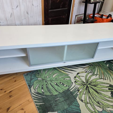 Uutta vastaavassa kunnossa oleva, valkoinen TV-taso.