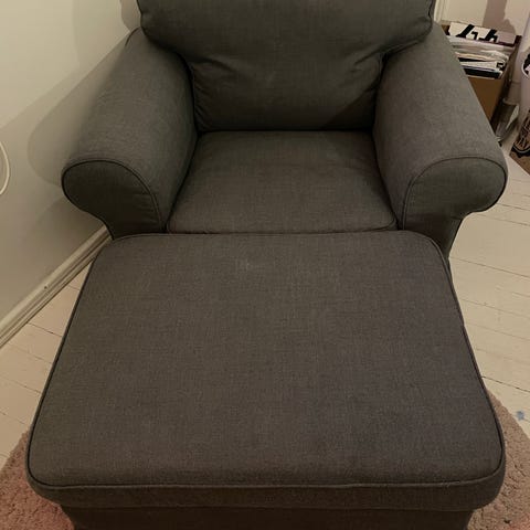 Ikean tukeva Ektorp harmaa nojatuli. Irroitettavat ja konepestävät päälliset.
