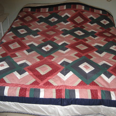 Tilkkutäkki 176 cm x 136 cm kuin uusi. Päällinen hirsimökkitekniikalla tehty, alapuoli ja reunat valkaisematonta puuvillakangasta. Upeat kirkkaat värit. Kunto erinomainen. Postitus postimaksulla.