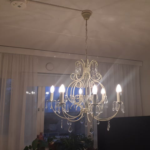 Tyylikäs valkea kattokruunu (muovia ja metallia).