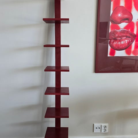 3 osainen kirjahylly. Yksi osa 80cm. Kiinnitys hyllyn yläpuolelta seinään. Haku paikan päältä.