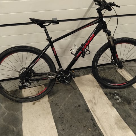 Hieno, mutta liian vähälle ajolle jäänyt Trek Farley 5. Luonnollisesti jotain käytön jälkiä, mutta yleisilme hyvin siisti. Kirkkaalla kiveniskuteipillä yrittänyt suojata arimpia paikkoja. Runko muistaakseni L -kokoa, eli optimi varmaa n. 170-180cm kuskille.