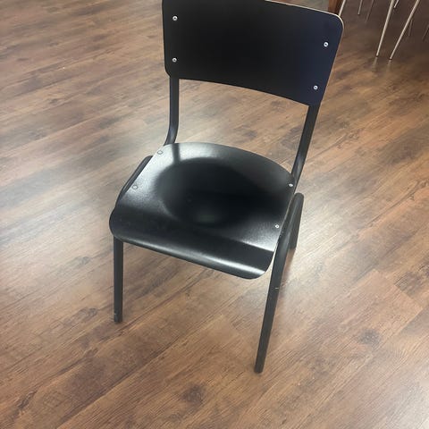Hienokuntoisia Martelan asiakastuoleja, istuin ja selkä ympäriverhoiltu musta kangas, käsinojat musta muovi, jalkaosa kromi, pinottava.