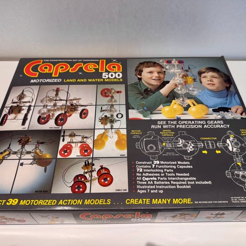 Harvinainen Technokid rakennussarja, alkuperäinen laatikko 39 x 29 x 4 cm, kaikki osat, mutterit, ruuvit jne. tallella ja hyväkuntoisia. Ohjekirjanen. Valmistettu 1950--luvulla Unkarissa.