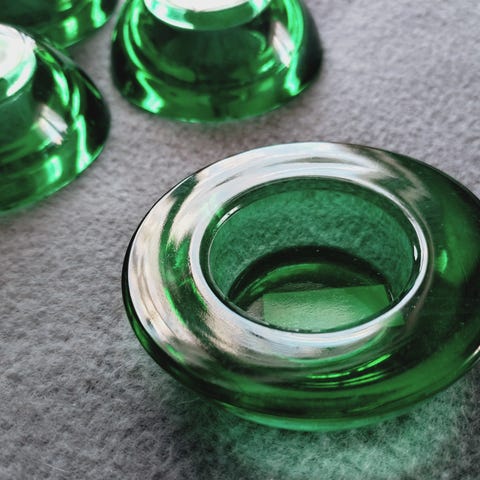 Tuikkukipot 8 kpl, 5 vihreää ja 4 sinistä, lasisia. Korkeus 5 cm. 80-90-luvulta.
