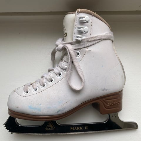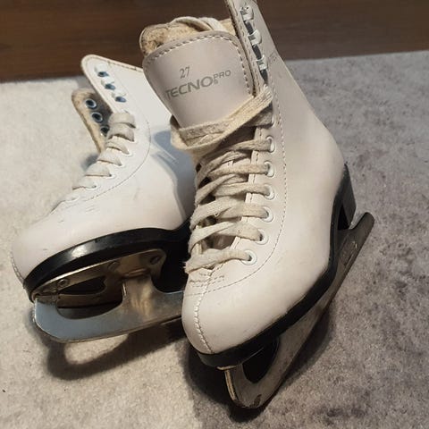 Tecnopro lasten taitoluistimet, koko 27. Väri valkoinen, nauhakiinnitys. Terät ovat perinteiset taitoluistinterät, joissa on hammastus kärjessä. Luistimet soveltuvat lasten luisteluun esimerkiksi jääkentillä ja halleissa.