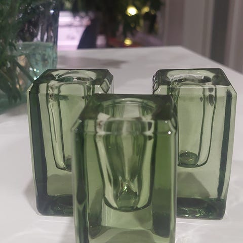 Pieniä lasimaljakoita 23kpl, korkeus 17cm,