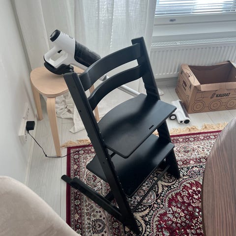 Stokke syöttötuoli, materiaali puu. Säädettävä istuin- ja jalkataso, jotka voidaan asettaa eri korkeuksille lapsen kasvun mukaan. Soveltuu lapselle, joka pystyy istumaan itsenäisesti. Tuoli on suunniteltu käytettäväksi ruokapöydän ääressä ja tarjoaa tukevan istuma-asennon. Puupinta on jätetty luonnollisen sävyiseksi.