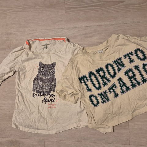 Neljä ehjää, siistiä t-paitaa yhteishintaan. Koot 146-158. Käytännössä samankokoisia kaikki, sopii n.150 cm:n pituiselle.