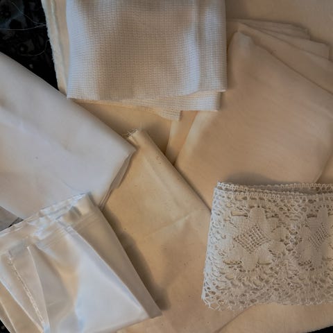 Edullisesti settinä fleece kankaita. Eri värejä, eri määriä ja eri laatuja. En mittaile erikseen mutta pelkkää harmaata oli täys ehjä metrin pala. Kaikki joustaa aina vähintään yhteen suuntaan.