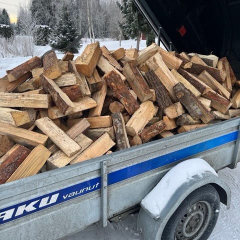 Useamman vuoden vanhaa polttopuuta, purettavan talon pihalta. Vaihtelevan kokoista ja kuntosta. Pituus n. 30-40cm. Klapit on pakattu suursäkkeihin, voidaan sovitusti nostaa kärryn kyytiin. Ilman nostoa, joustavammin noudettavissa.