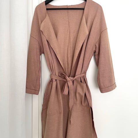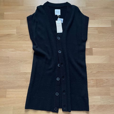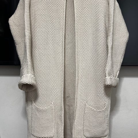 Part Two vaalea neuleliivi / neuletakki koko S. Materiaali 100% villa. Pitkä, napitettava malli, jossa syvä V-pääntie ja resorireunukset helmassa ja pääntiellä.