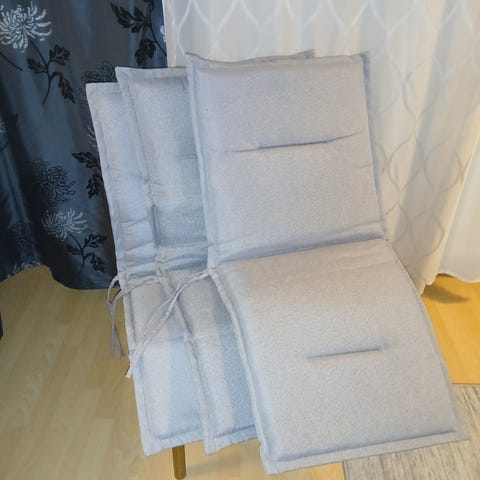 Myydään muuton tieltä istuin tyynyjä 2€/kpl. Vasen punainen 4kpl 41,5x37 cm Harmaa 4kpl 40x40 Harmaa raidallinen 2kpl 40x40 oikealla 4kpl 38x40. Nopea haku.