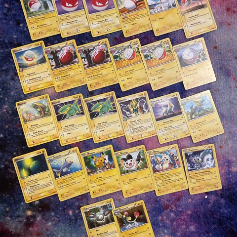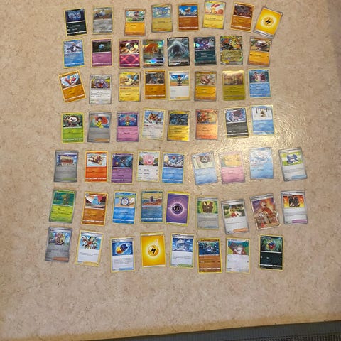 Pokémon keräilykortit sekapaketti. Korteissa useita eri Pokémoneja ja valmentajakortteja eri sarjoista ja tyypeistä. Kuvat esittävät esimerkin korteista ja niiden kunnosta. Sopii kokoelman täydentämiseen tai pelaamiseen Pokémon TCG -pelissä.