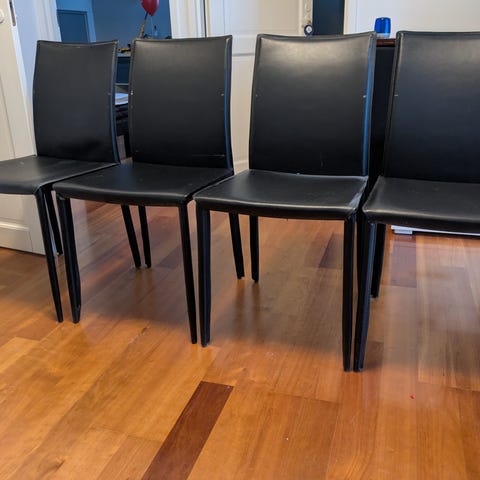 4 kappaletta samanlaisia ruokapöydän tuoleja. Tuolit muuten ehjiä mutta kankaissa kuvanmukaisia kissan raapima jälkiä, yleis-ilme kuitenkin siisti. Myydään pakettina.