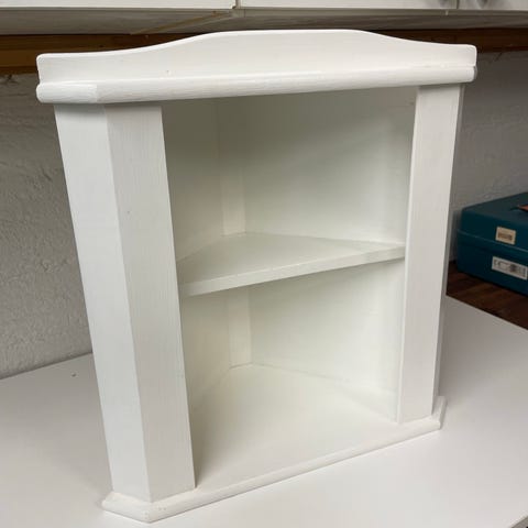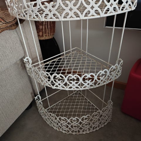 Voisi toimia myös kukkapöytänä esimerkiksi. Hyllyssä pieni halkeama päällä kulmassa, mutta edelleenkin tukevaja toimiva.