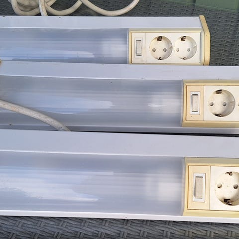 Airam merkin työvalo tms, tosi näppärä kokoontaittuva, monin eri tavoin ripustettava.