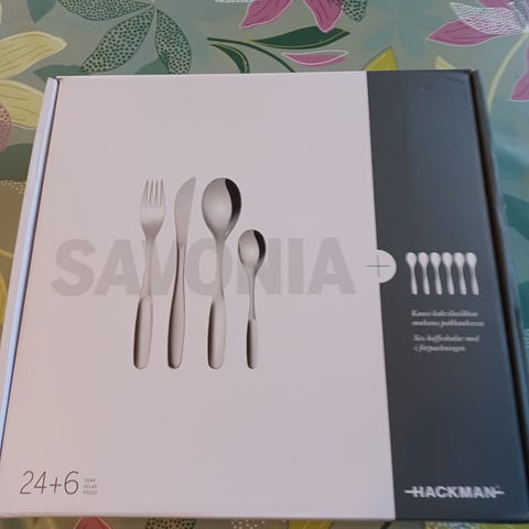 Hackman Savonia uusi aterinsetti, 24-osainen. Alkuperäisessä pakkauksessa, pakkaus hieman revennyt avauskohdasta.