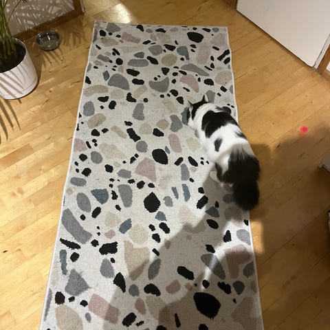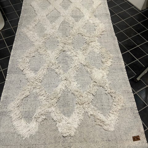 Annetaan muuton yhteydessä beige karvamatto. Matto on puhdas, mutta käytössä olleena yhdestä kohtaa karvat ovat tallautuneet latteaksi. Koko jotain 160x230 tai 135x185.