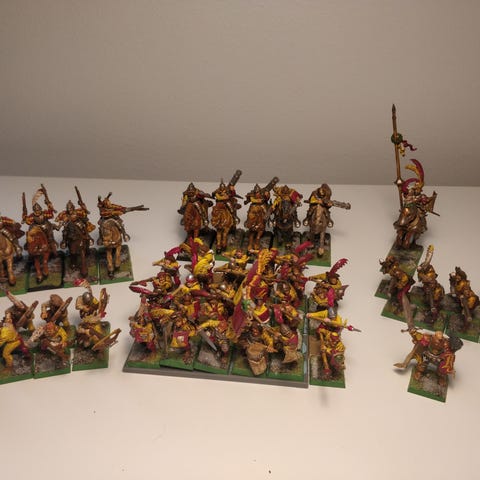 Maalattuja fantasiapelin miniatyyrejä, useita yksiköitä ja hahmoja. Kokonaisuuteen kuuluu jalkaväkeä, ratsuväkeä, tykistöä ja erilaisia taistelijoita neliönmuotoisilla alustoilla. Väritys on pääosin ruskean ja metallinsävyinen, yksityiskohtia korostettu eri sävyillä. Soveltuu pöytäroolipeleihin, miniatyyristrategiapeleihin tai kokoelmakäyttöön. Osassa päällä kiiltävä lakka, joten voi vaatia töitä.