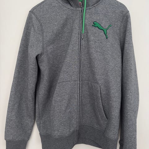 Puma-huppari miehille koossa L. Tummanvihreä vetoketjullinen huppari, jossa edessä iso Puma-logo. Valmistettu 100% puuvillasta. Edessä kengurutasku ja säädettävä huppu nyöreillä. Sopii arki- ja vapaa-ajan käyttöön.