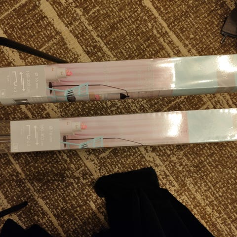Metalliset verhotangot. Pituudet 110 cm ja 120 cm. Mukana seinäkiinnikkeet. Hinta yhteensä 10 euroa tai 5 eur kpl.