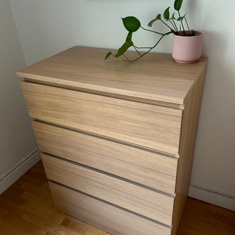 🗄️ Hyväkuntoinen IKEA MALM Lipasto Peilillä, vaaleaksi petsattu tammiviilu on myytävänä.