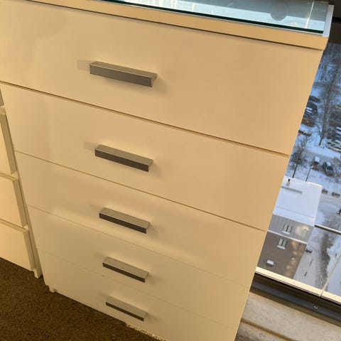 6-laatikkoinen lipasto hauskojen vetimien kanssa