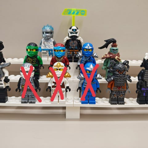 Lego Ninjago minifiguureja, 1,50/kpl. Leikeissä olleita, kasvoissa näkyy enemmän tai vähemmän jälkiä.