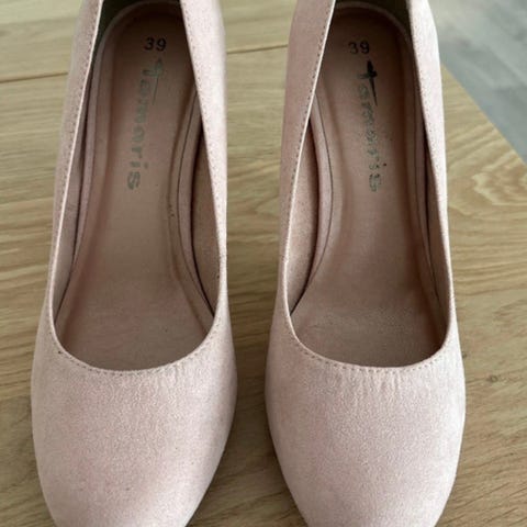 Vaalea beige, nupukkijäljitelmä, korko n. 7cm, käyttämättömät