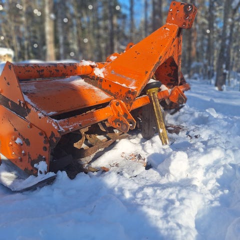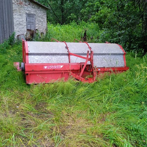 Asiallinen 6-lapainen pöyhin. Muutama piikki puuttuu. Nivelakseli kuuluu mukaan.