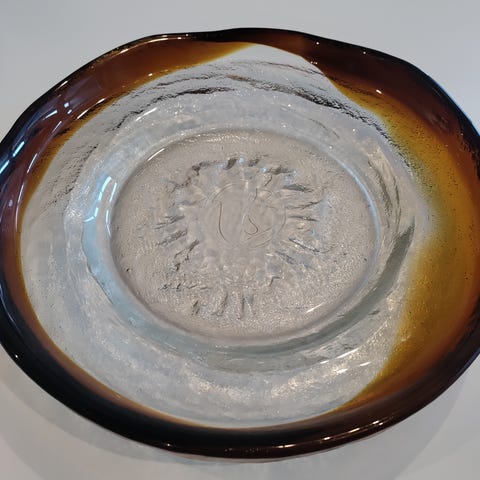 Humppilan Lasin Ulpukka-tarjoiluvati, halkaisija 26,5cm, korkeus 5-6cm.