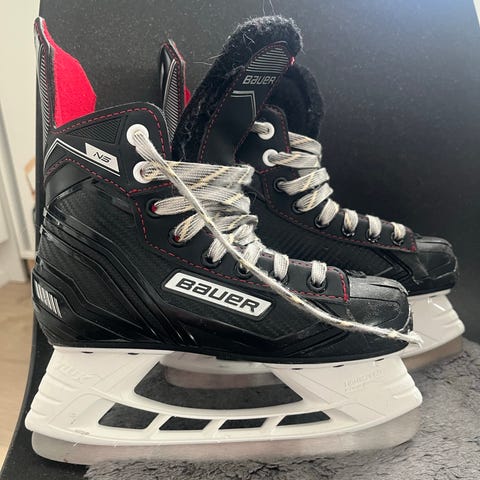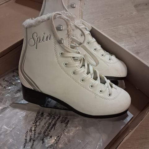 CCM D1 luistimet, koko 35. Väriltään mustat valkoisilla teräpitimillä. Nauhakiinnitys.