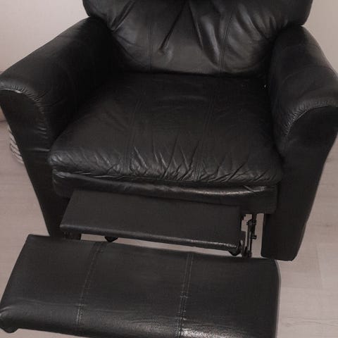 Käsinojan nahkapäällinen rikki. ( ollut kissan tuolina )