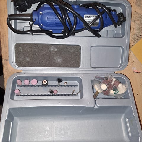 Dremel monitoimityökalu, mukana erilaisia tarvikkeita ja sininen säilytyskotelo. Settiin kuuluu useita hioma- ja katkaisutarvikkeita sekä käyttöohjeet. Soveltuu esimerkiksi pienten kohteiden hiontaan, leikkaukseen, kaiverrukseen ja viimeistelytöihin kotona tai harrastuskäytössä.
