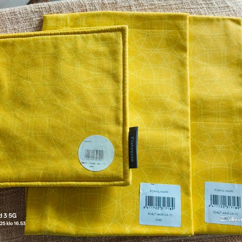 Käyttämätön, avaamattomassa paketissa oleva pöytäliina.