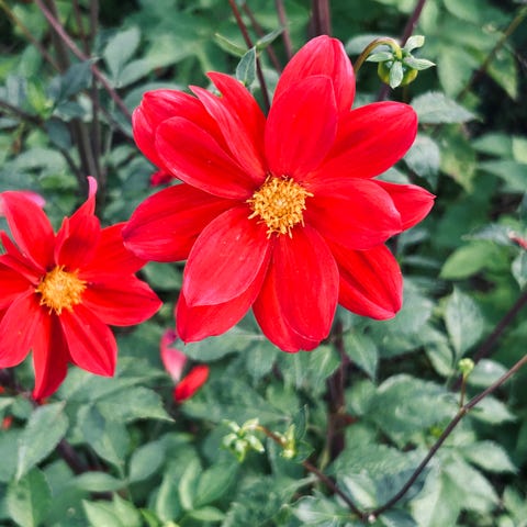 Dahlia punainen kukka mukula. Punakukkainen lajike, jossa kerrottu kukinto ja keltainen keskusta. Myynnissä on daalian juurakko/mukula, joka istutetaan keväällä kasvukaudelle sopivaan multaan. Soveltuu kukkapenkkiin tai suureen ruukkuun ulkokäyttöön. Tämä on vanhaa korkeaa perinnedaaliaa jonka kukka kerrottu. Kasvaa noin 150-170 cm korkeaksi jos on hyvä lannoitettu ja aurinkoinen kasvupaikka. Myyn siis kokonaisia juurakoita enkä vain yhtä tai kahta jakopalaa. Ostaja saa itse jakaa juurakon useammaksi yksilöksi. Voin lähettää jolloin lähetyskulut ostajalle. Lähettäminen tapahtuu keväämmällä kun kelit sallivat eikä vaarana että juurakko paleltuu. Näitä on myynnissä muutama ja voi nyt varata.