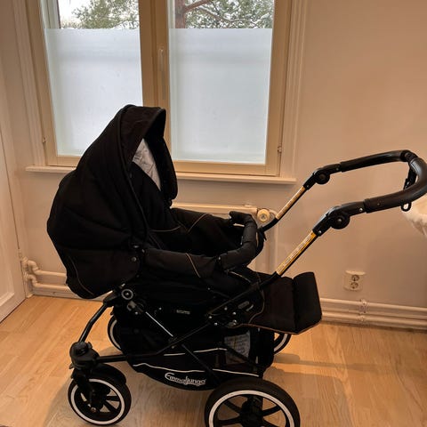 Myydään go double adapterit Super Viking vaunuihin sekä musta istuin jalkapeitteellä, istuimen hyttysverkossa pieni kuluma ja olkainpehmusteet puuttuu.